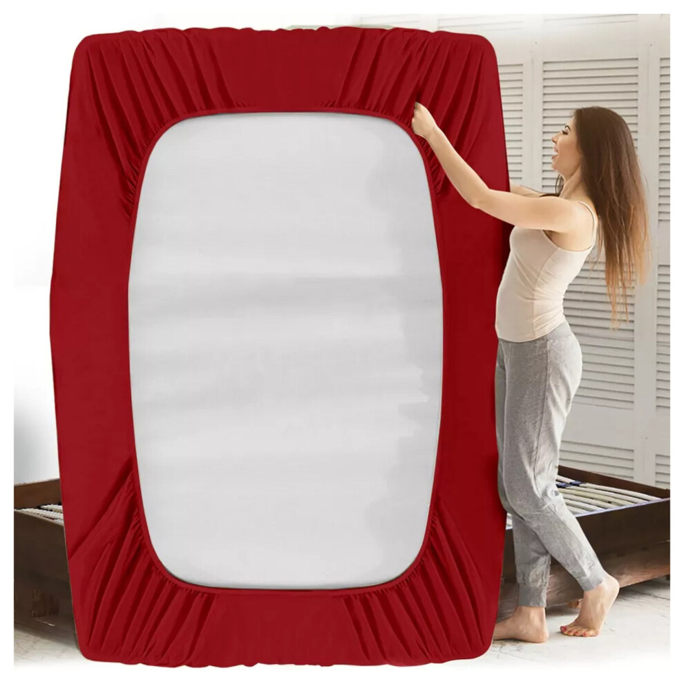 (Double) Deep Fitted Sheet Single Double King Super King Size Microfiber Red Bed Sheets