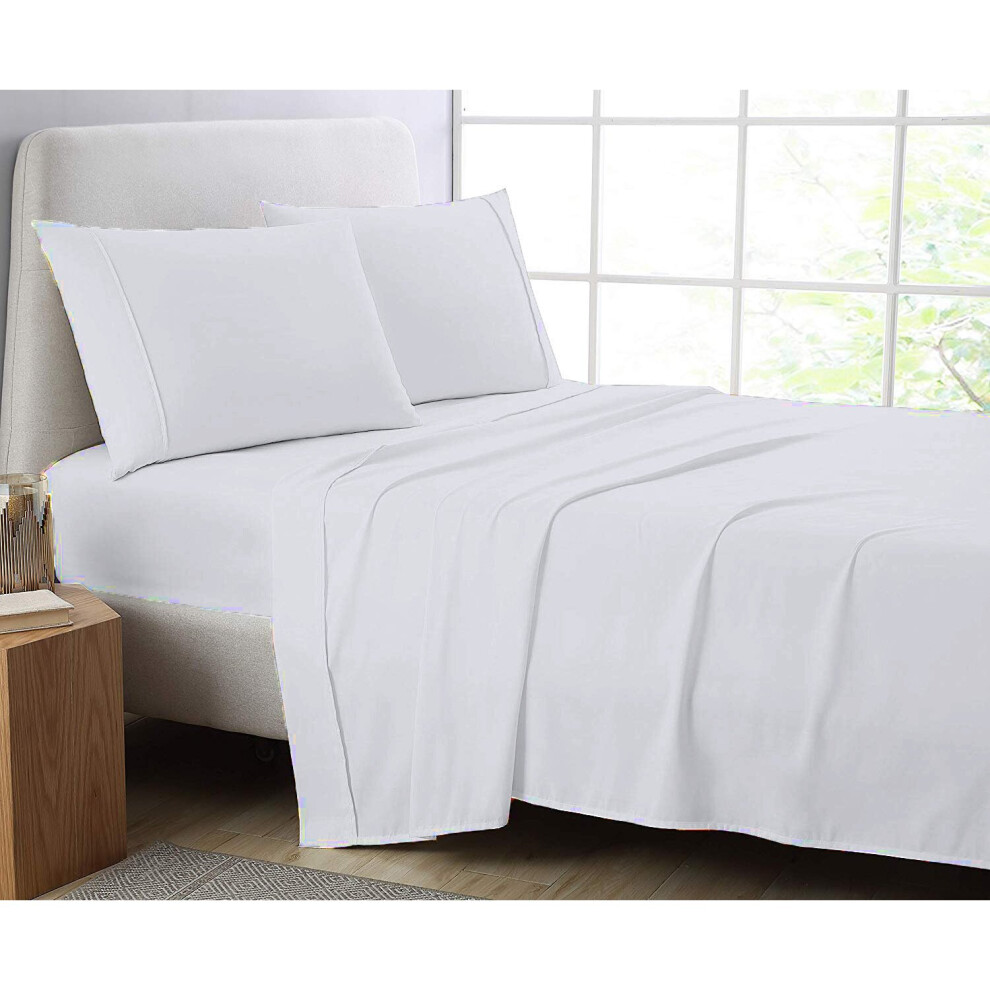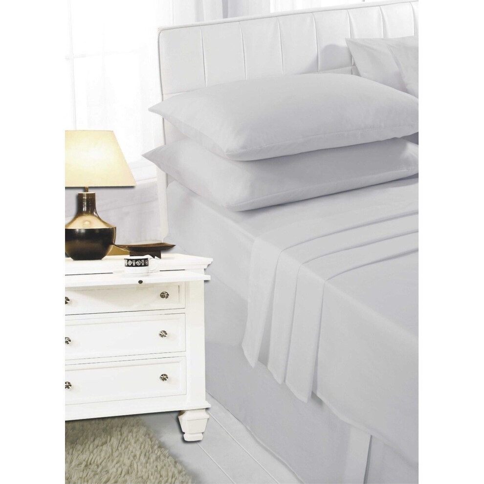 (White, Super King) Full Flat Sheet Bed Sheets 100% Poly Cotton Single Double King Super King Size