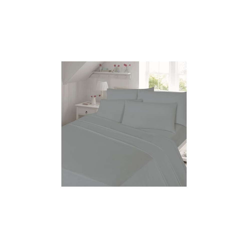 (Grey, Super King) Full Flat Sheet Bed Sheets 100% Poly Cotton Single Double King Super King Size