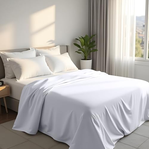 Sunshine Comforts Microfiber Flat Sheets Super King Size Breathable, Anti Wrinkle, Shrink and Fade Resistant Bed Sheets White Bedding & Linen 280 x 254cm Super King Flat Sheet Washable (White)