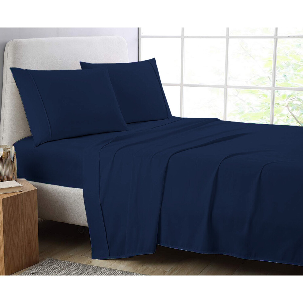 (Navy, Pillow Pair Onley) Full Flat Sheet Bed Sheets 100% Poly Cotton Single Double King Super King Size
