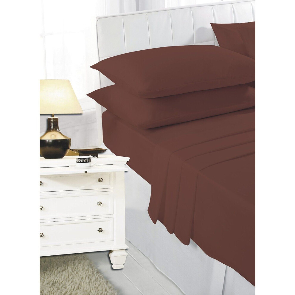 (Chocolate, Pillow Pair Onley) Full Flat Sheet Bed Sheets 100% Poly Cotton Single Double King Super King Size