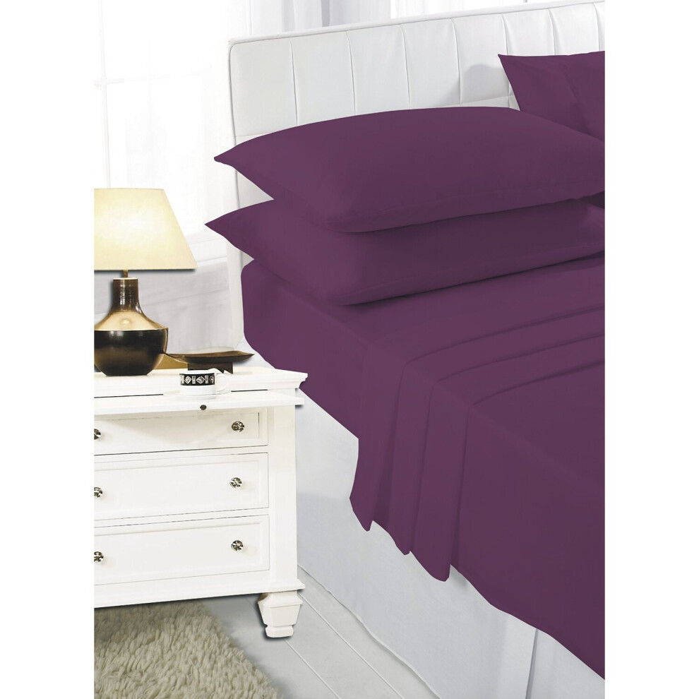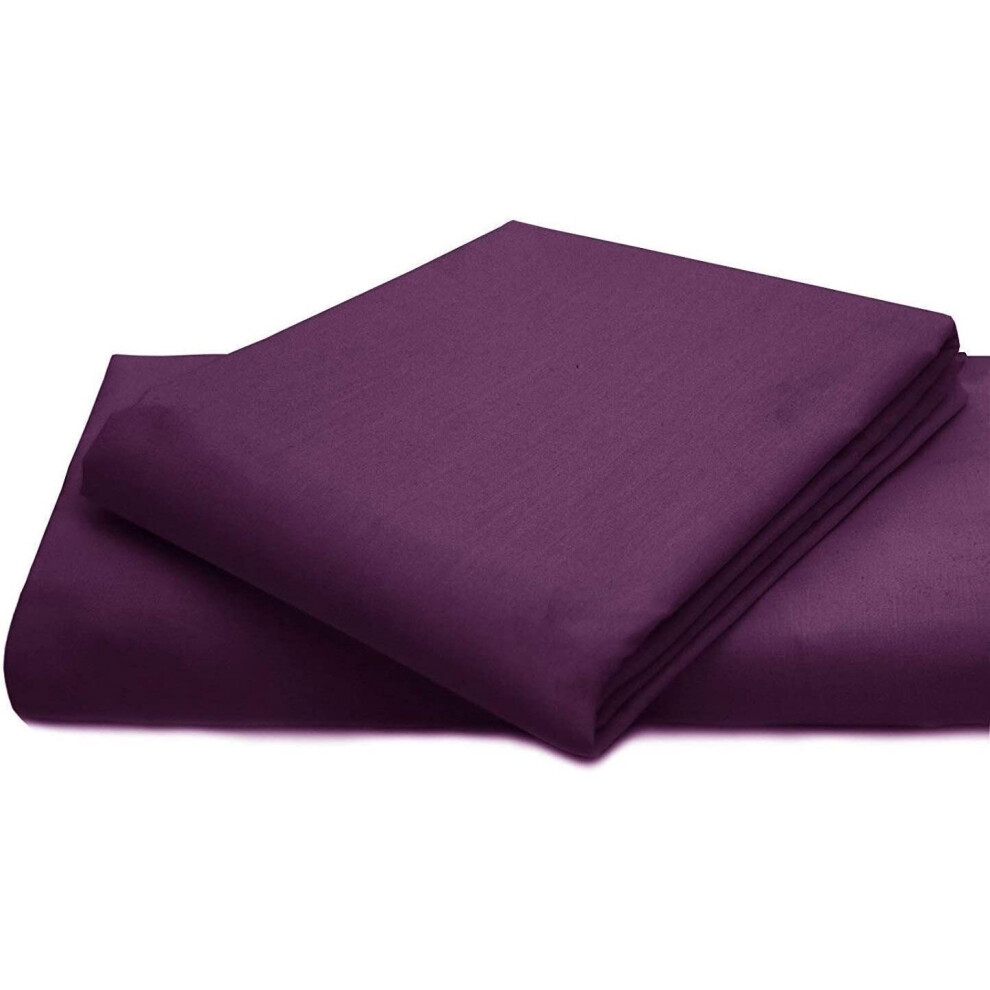 (Aubergine, Pillow Pair Onley) Full Flat Sheet Bed Sheets 100% Poly Cotton Single Double King Super King Size