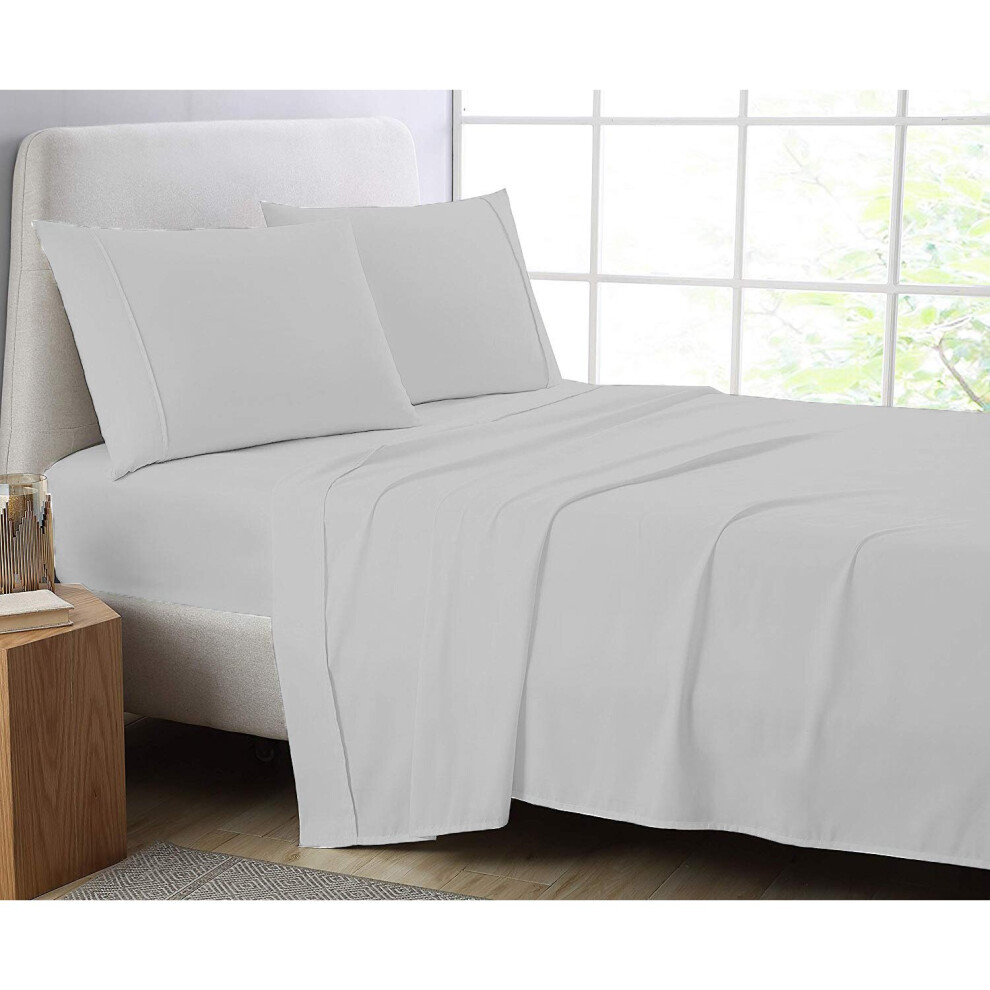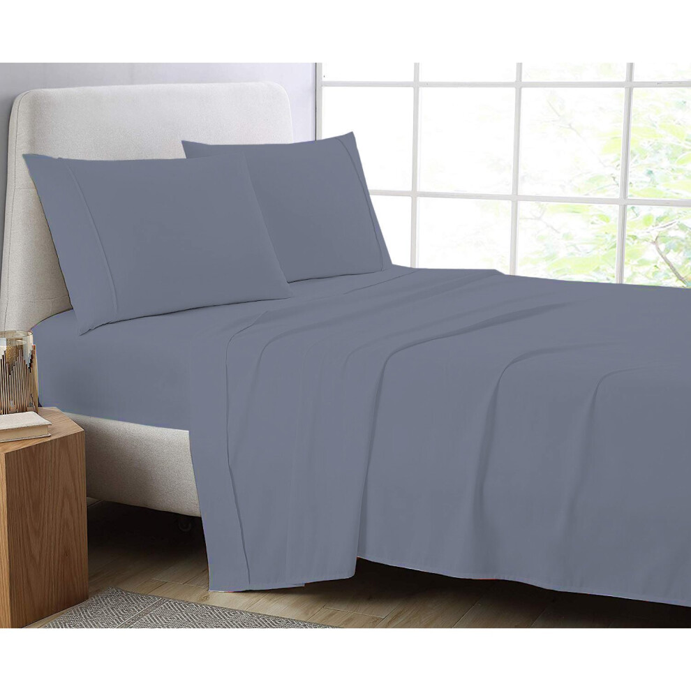 (Grey, Pillow Pair Onley) Full Flat Sheet Bed Sheets 100% Poly Cotton Single Double King Super King Size
