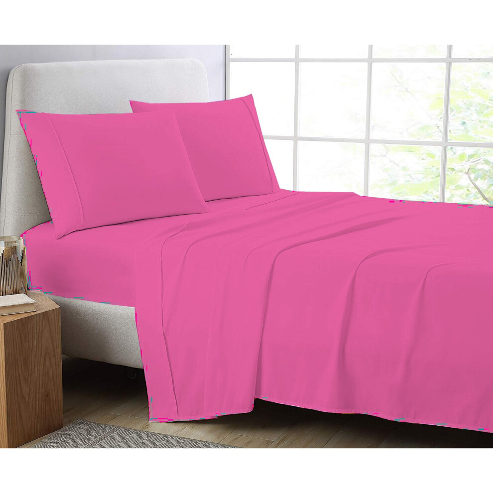 (Fuscia, Pillow Pair Onley) Full Flat Sheet Bed Sheets 100% Poly Cotton Single Double King Super King Size