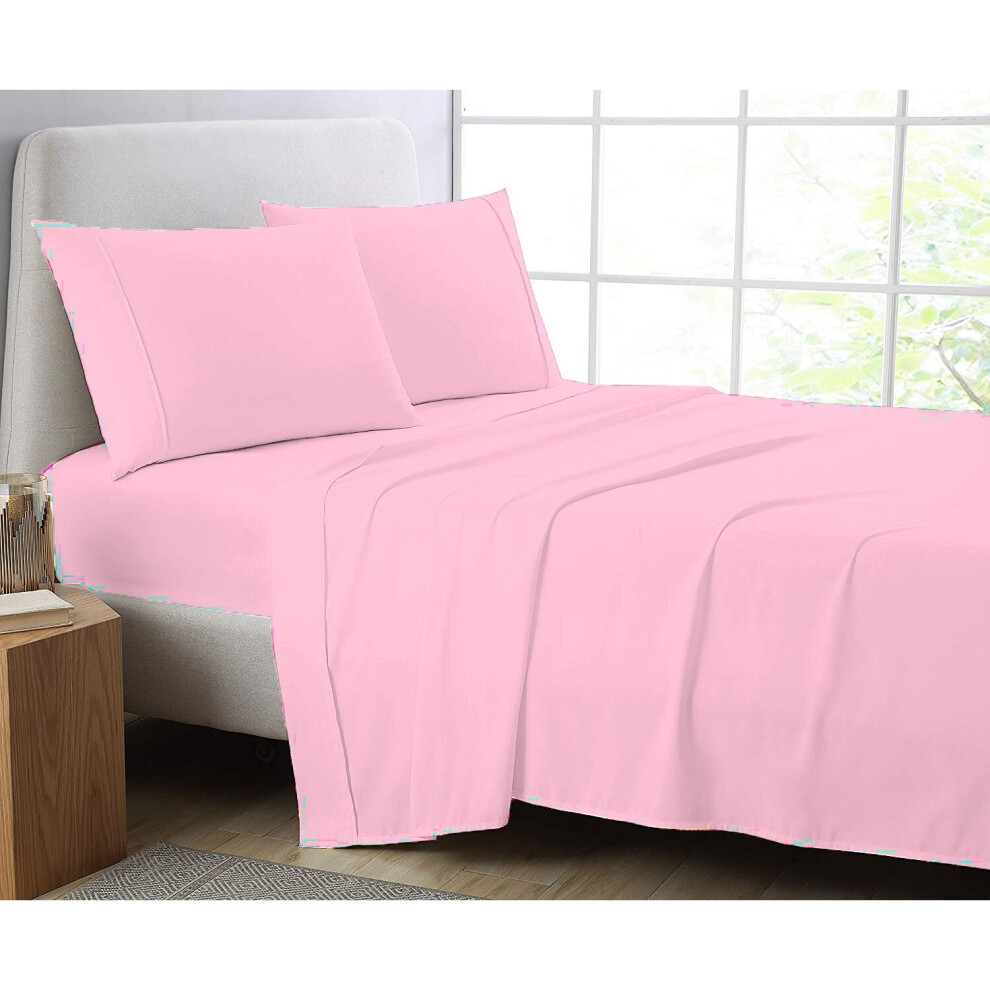 (Pink, Single) Full Flat Sheet Bed Sheets 100% Poly Cotton Single Double King Super King Size