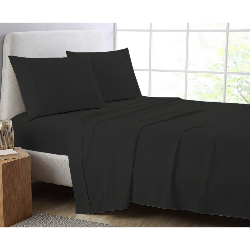(Black, Pillow Pair Onley) Full Flat Sheet Bed Sheets 100% Poly Cotton Single Double King Super King Size