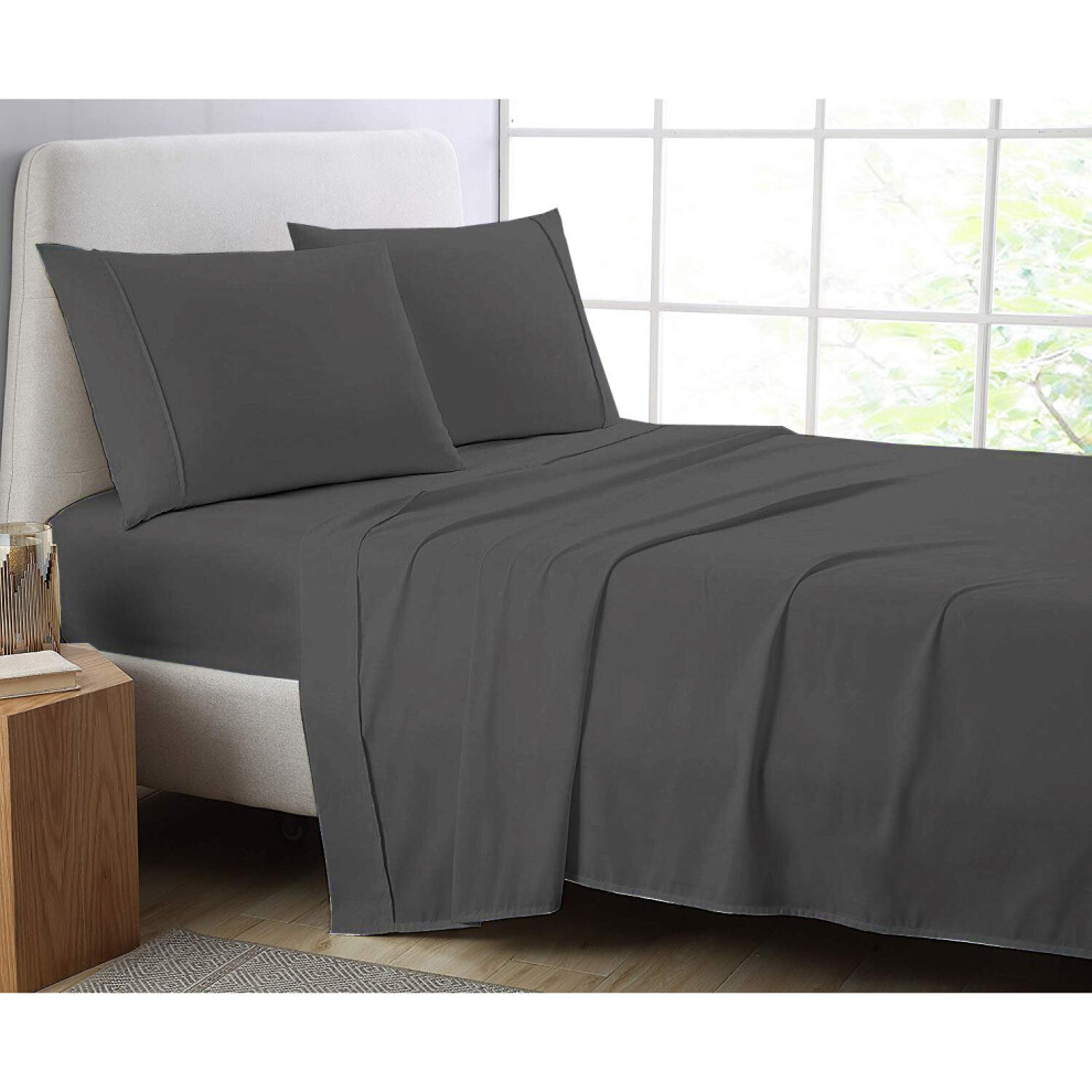 (Charcole, Pillow Pair Onley) Full Flat Sheet Bed Sheets 100% Poly Cotton Single Double King Super King Size