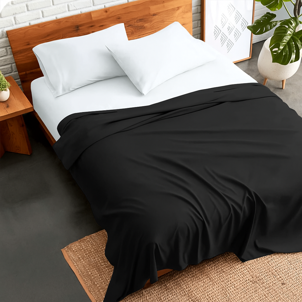 (Black, Super King) Full Flat Sheet Bed Sheets 100% Poly Cotton Single Double King Super King Size