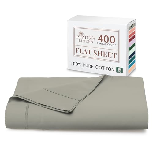 Pizuna Super King Flat Sheet Silver, 400 Thread Count Long Staple 100% Cotton Flat Sheet Super King 300x280 cm, Sateen Weave Top Sheet Super King (Cotton Flat Sheet Super King Size)