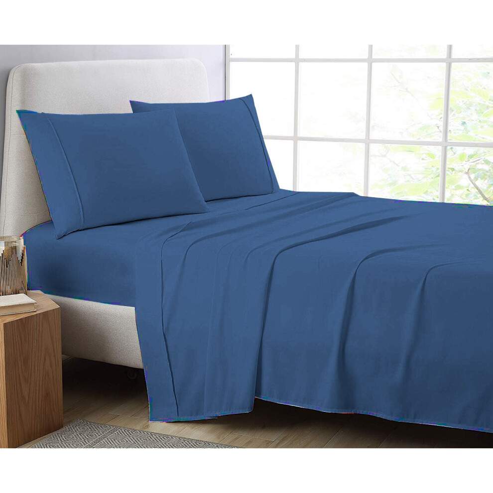 (Mid Blue, Super King ) Sheet Set Fitted & Flat sheet with Pillowcase Size