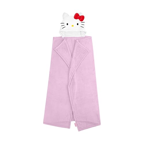 Official Hello Kitty Hooded Towel Poncho | Super Soft Feel, Cheeky Design | Swimming Changing Robe Perfect The Home, Bath & Beach, Red, 55 x 50 cm