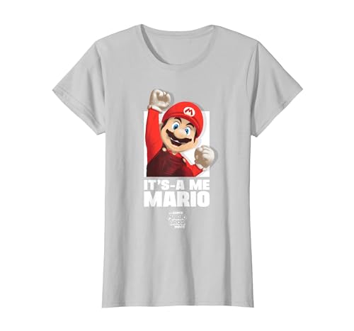 The Super Mario Bros. Movie It’s-a Me Mario Portrait T-Shirt, Women, Silver Grey, X-Large