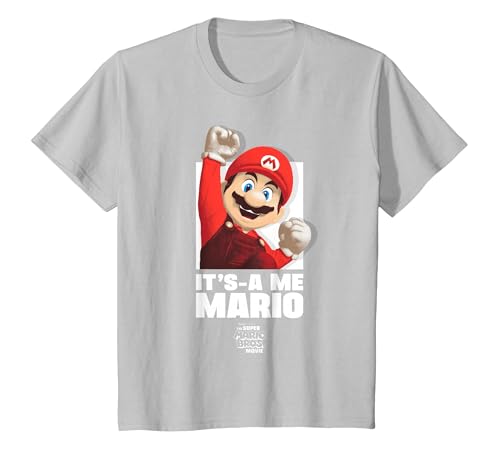 The Super Mario Bros. Movie It’s-a Me Mario Portrait T-Shirt, Youth, Silver Grey, X-Small