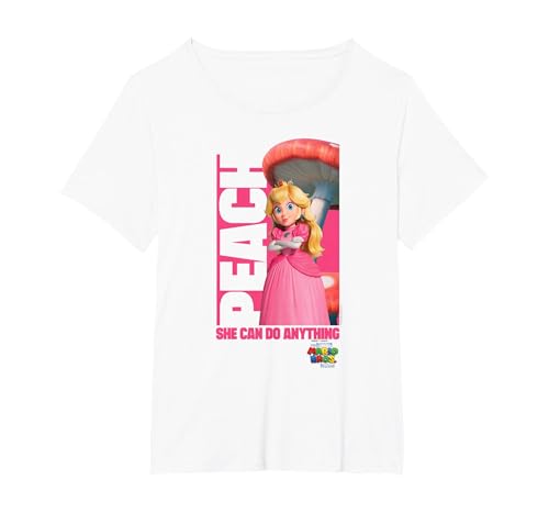 The Super Mario Bros. Movie She Can Do Anything Peach Poster T-Shirt, Women's Plus, White, 5X