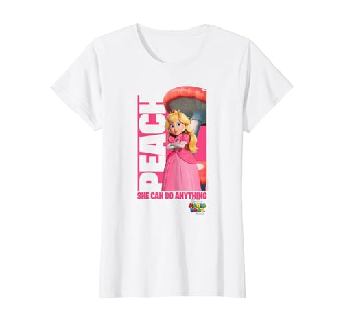 The Super Mario Bros. Movie She Can Do Anything Peach Poster T-Shirt, Women, White, X-Small