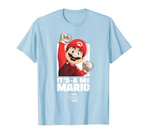The Super Mario Bros. Movie It’s-a Me Mario Portrait T-Shirt, Men, Baby Blue, Medium