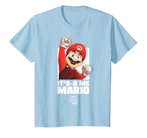 The Super Mario Bros. Movie It’s-a Me Mario Portrait T-Shirt, Youth, Baby Blue, Small
