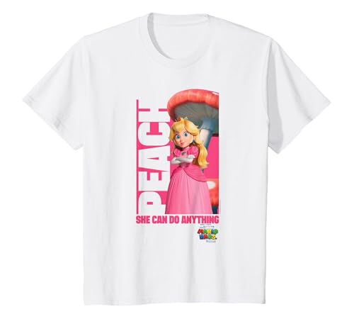 The Super Mario Bros. Movie She Can Do Anything Peach Poster T-Shirt, Youth, White, Small