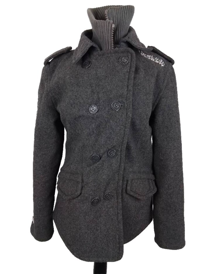 Superdry Women's Military-style Pea Coat Grey Size: L