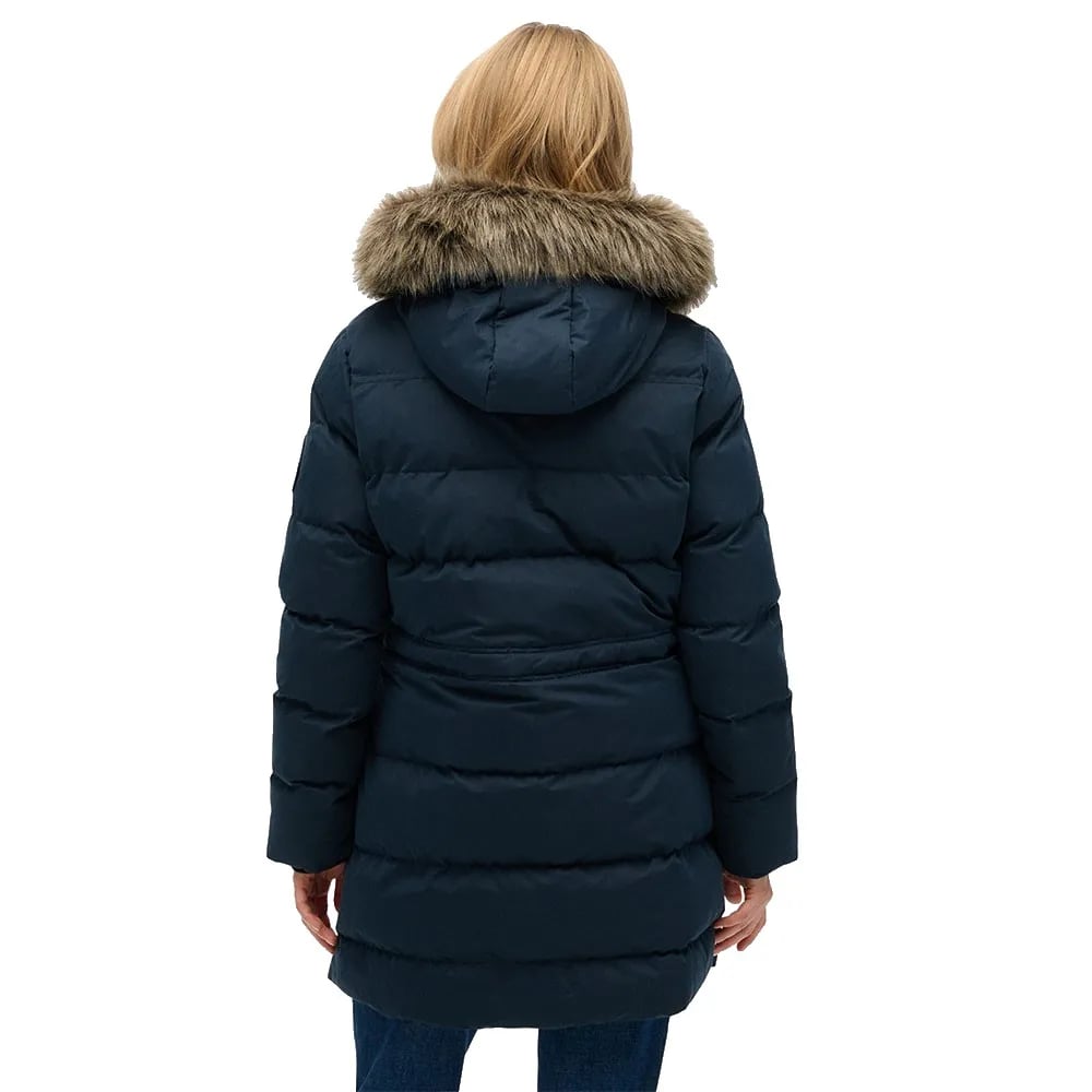 Superdry Womens Fuji Faux Fur Hooded Longline Jacket Navy Colour Size 16