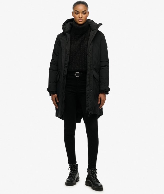 Superdry Womens City Fishtail Padded Parka Black Colour Size 16