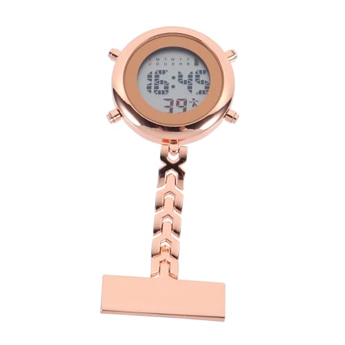 FRCOLOR Multifunction Rose Gold Nurse Lapel Pin Watch Digital Display Fob Timer for Medical Professionals and Students Easy to Read Electronic Pocket Hanging Watch