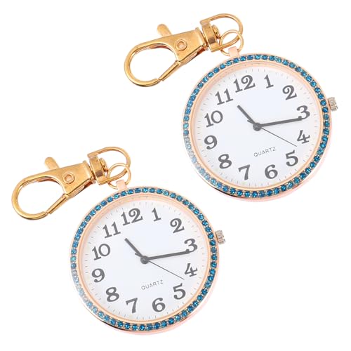 Holibanna 2pcs Rhinestone Pocket Watch Keychain Clip-on Rose Gold Unisex Easy to Attach for Nurses and Boys and Girls