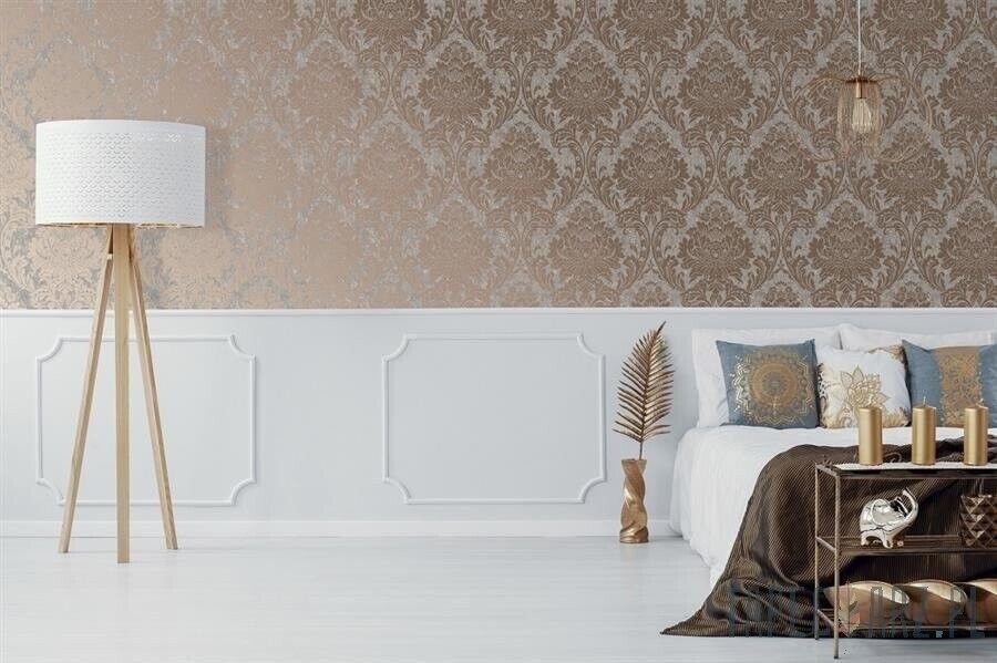 Superfresco Milan Damask Metallic Rose Gold Bold Statement Wallpaper 106519