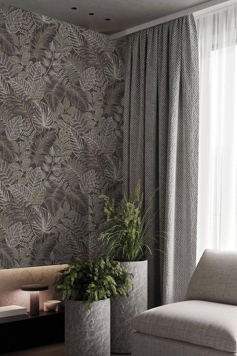 Superfresco Easy Scattered Leaves Charcoal/Gold Wallpaper Sample