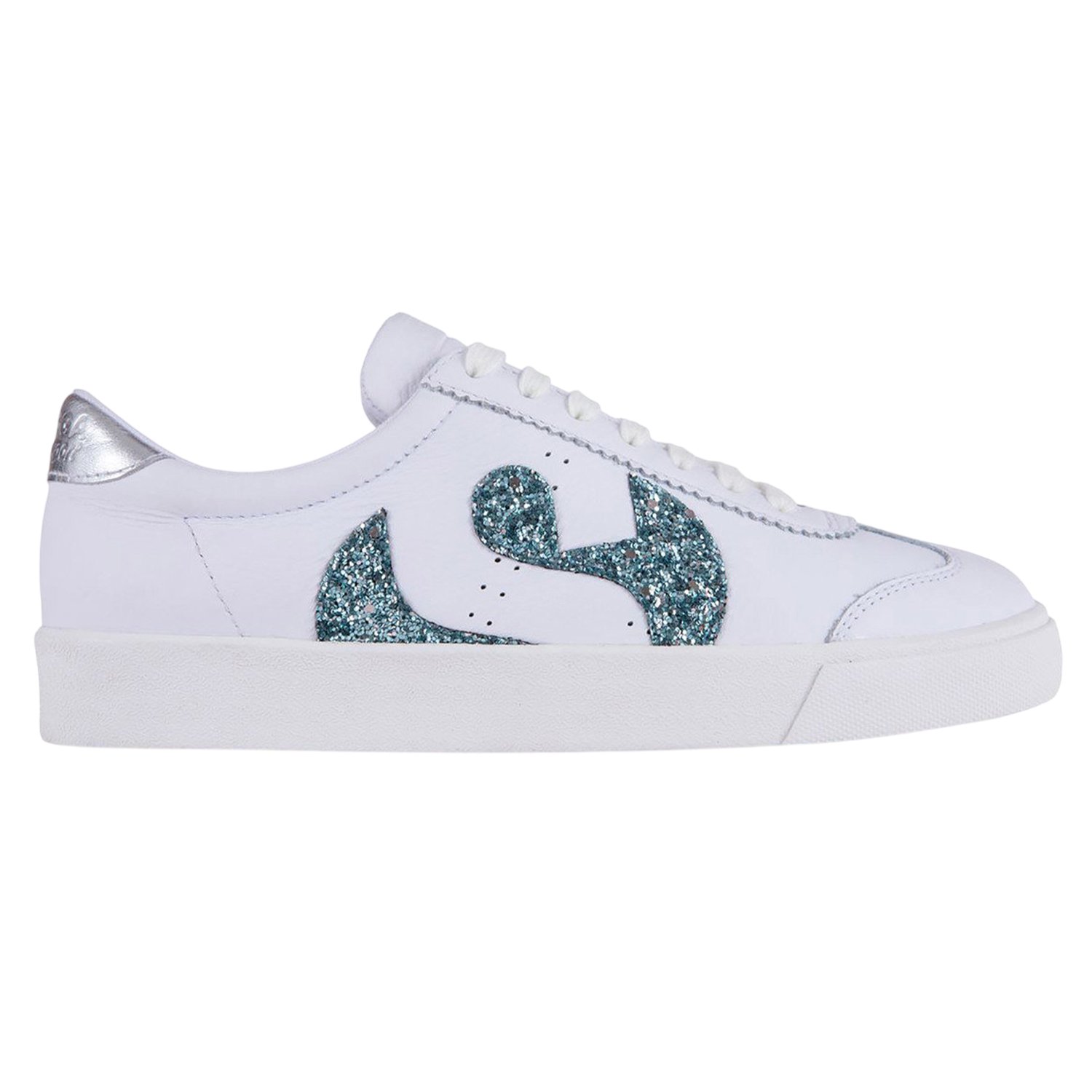 Superga Womens/Ladies 2843 Club S Glitter Leather Trainers (White-Blue/Light) - Size UK 2.5