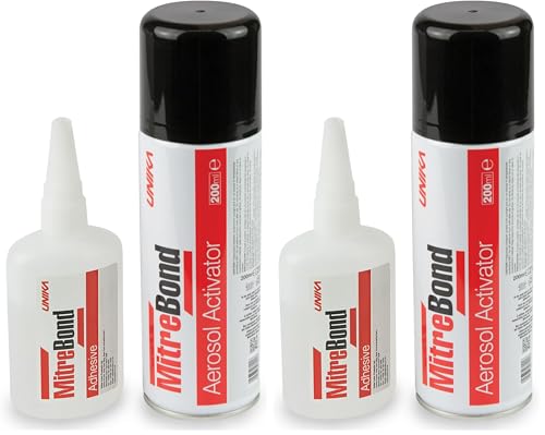 UNIKA MitreBond Superglue & Aerosol Activator – Industrial Strength, Fast-Setting, High Viscosity, Dries Clear – Strong Bond for Wood, MDF, Plastic, Metal, Ceramic, Glass and more (Pack of 2)