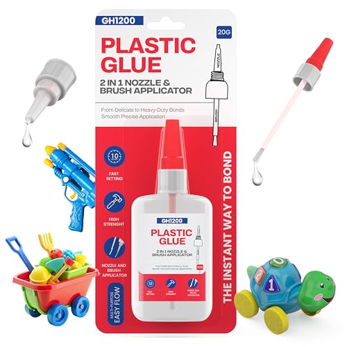 GH1200 (2-IN-1) Plastic Glue with Brush Applicator & Nozzle, Fine Superglue for Plastic, Instant Model Glue for Toys, Crafts, DIY & more