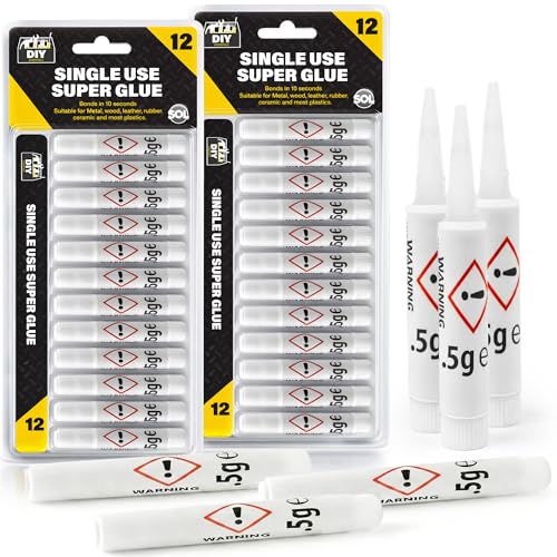 SOL 24pk Single Use Superglue 1.5g Fast Bond Adhesive Super Glue All Purpose for Metal Plastic Leather Ceramic Rubber Craft Repairs DIY Fixing Household Projects Compact Sachets Precision Application