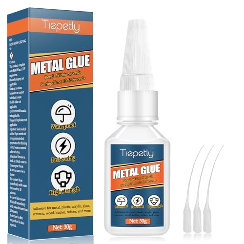 30g Metal Glue with Anti Clog Cap and Droppers, Instant Superglue for Metal, Steel, Aluminum, Copper and Other Materials (metal glue, 30g)