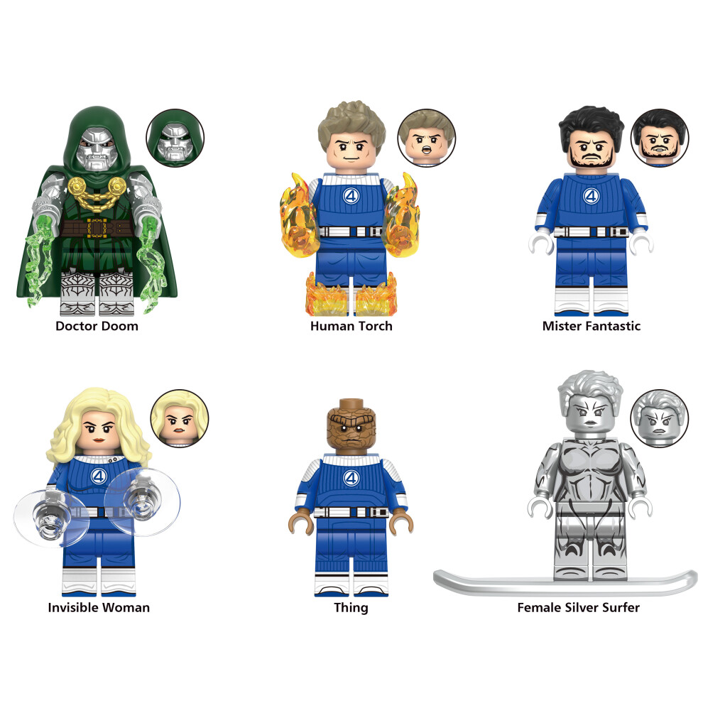 6PCS Superhero Minifigures Kids Toys Doctor Doom Human Torch Building Blocks Assemble Mini Action Figures Fit Lego