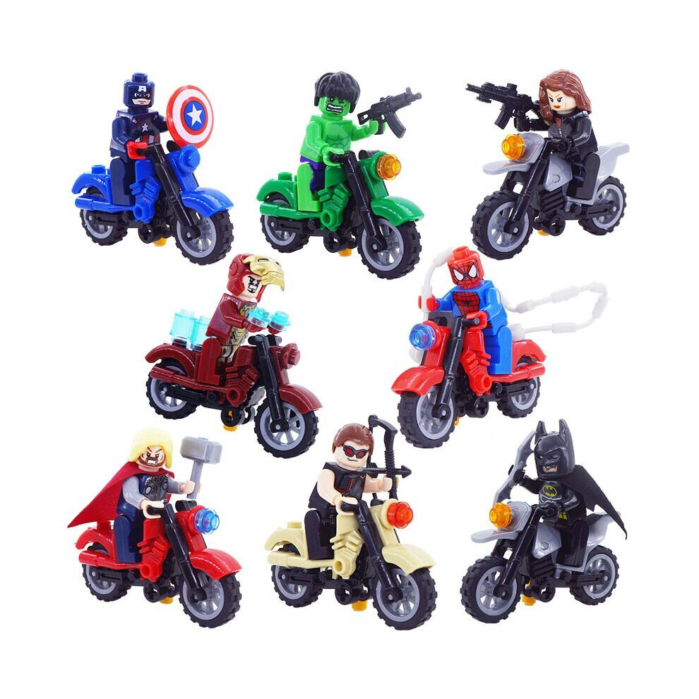 8PCS Superhero Motorcycles Minifigures Toys Fit Lego
