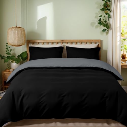 MIKI WELL Super King Duvet Cover Set - 3Pcs Reversible Superking Bedding Set Black and Grey, Soft Microfiber Quilt Cover with 2 Pillowcases 50x75cm