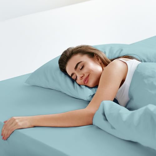 Aisbo Super King Duvet Covers Set Spa Blue - 3Pcs Superking Size Bedding Set Soft Brushed Microfiber Quilt Cover with 2 Pillowcases