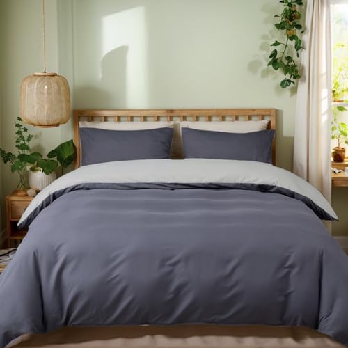 MIKI WELL Super King Duvet Cover Set - 3Pcs Reversible Superking Bedding Set Dark Grey and Light Grey, Soft Microfiber Quilt Cover with 2 Pillowcases 50x75cm
