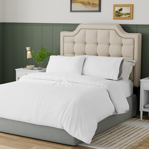 The Cotton Exchange Manchester 100% Cotton Super King Duvet Cover Set 260x220 cm, White, Percale Quilt Cover with Button Closure, Cooling Breathable SuperKing Bedding, Corner Ties Hotel Quality Duvet