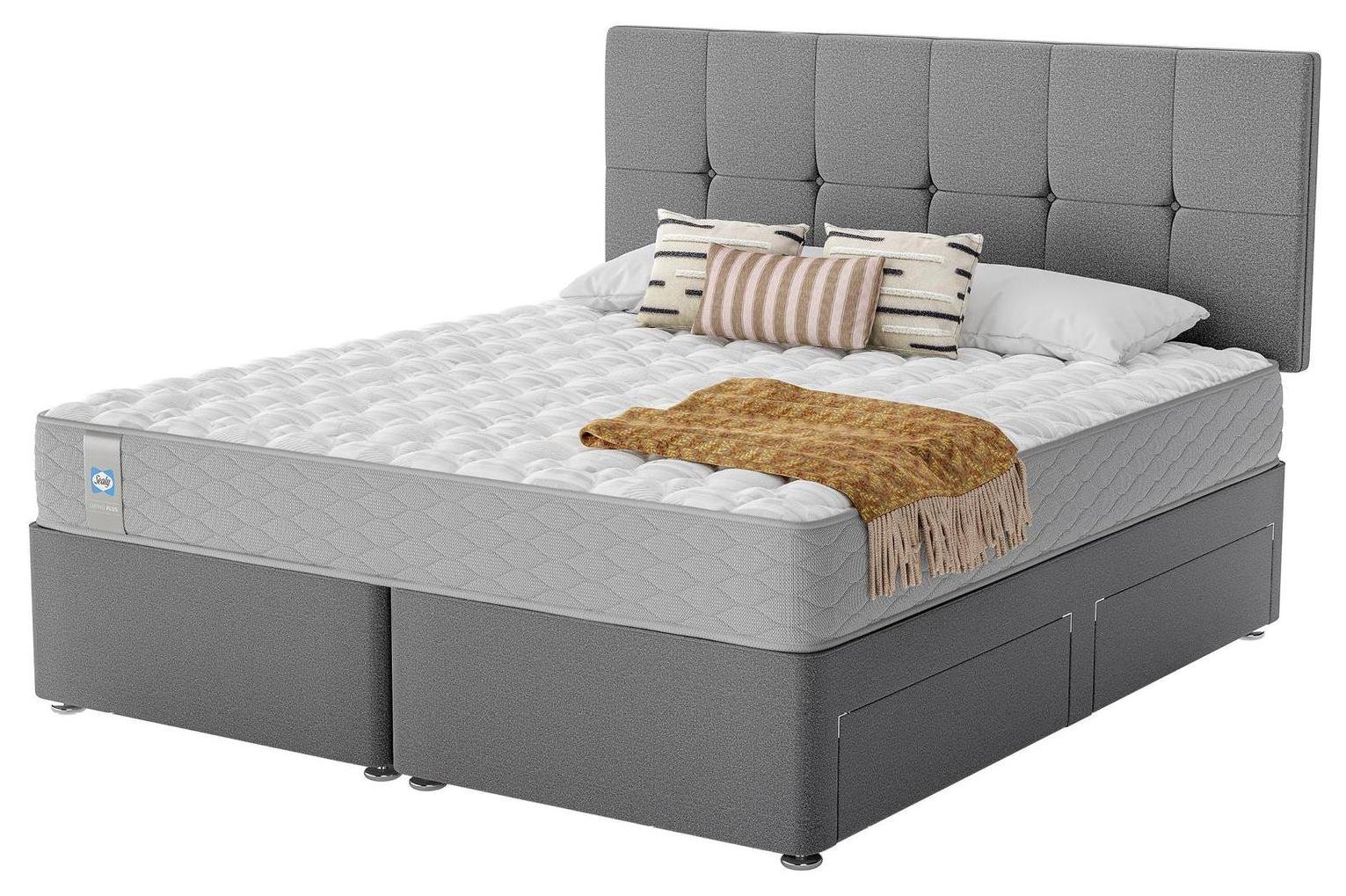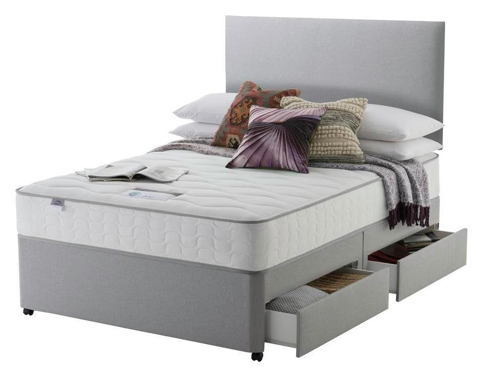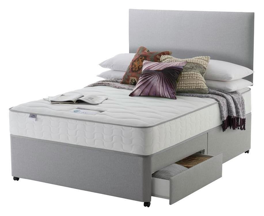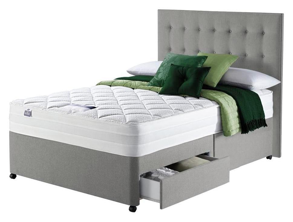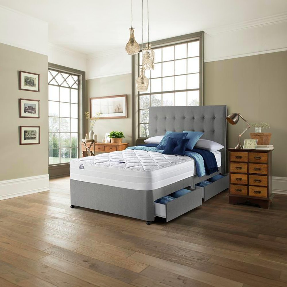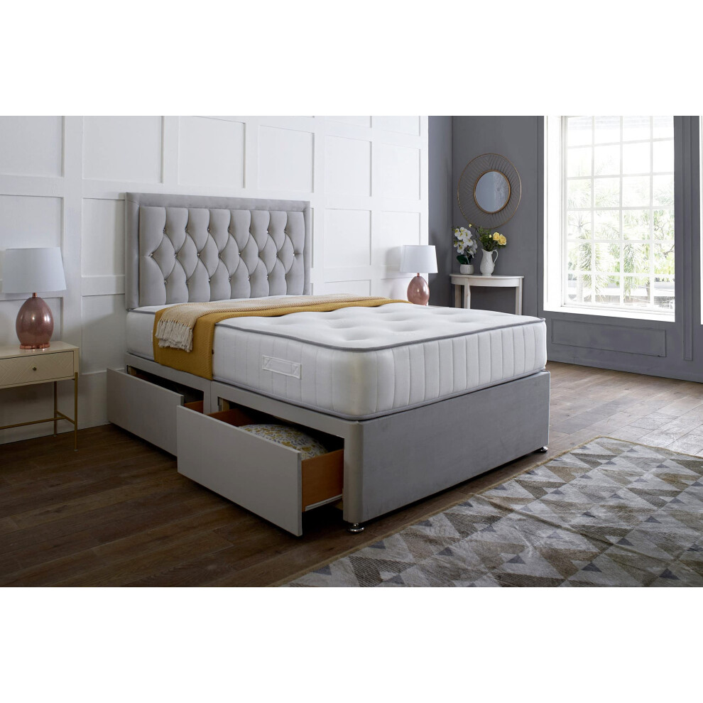 Silver Plush Memory Foam Divan Bed Set With Tufted Mattress, 2 Drawers and Headboard (6FT Superking)
