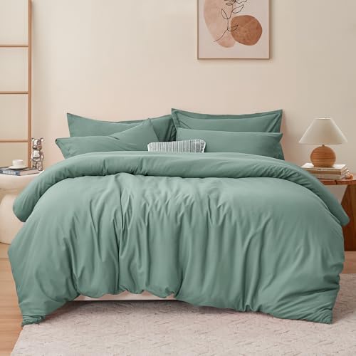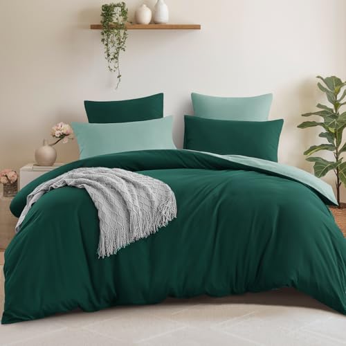 Aisbo Super King Size Duvet Cover Set - 3Pcs Reversible Bedding Bed Set Emerald and Sage Green Superking Soft Brushed Microfiber Quilt Cover with 2 Pillowcases 50x75cm