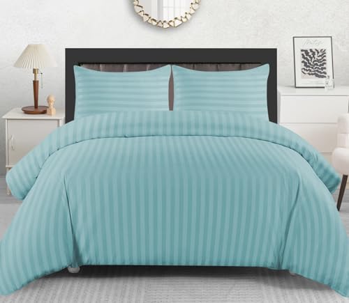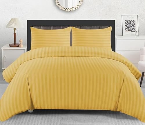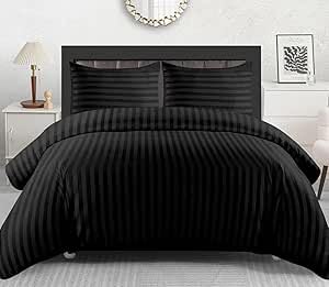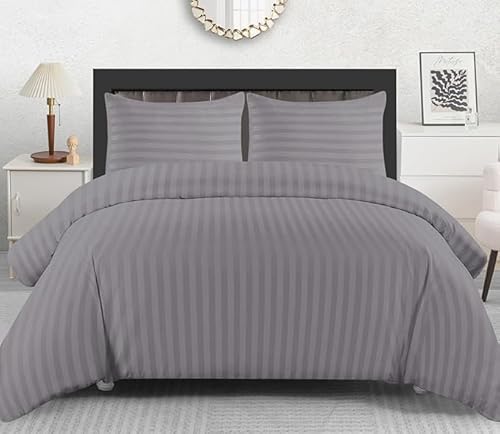 Lazzaro Satin Stripe Super King Duvet Set - Premium Microfiber Hotel Quality Quilt Cover King Size Bedding Set - Ultra Soft Hypoallergenic Superking Duvets Sets With Zipper Closure