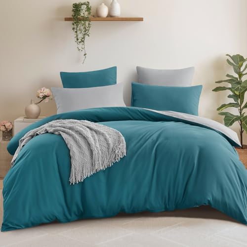 Aisbo Super King Size Duvet Cover Set - 3Pcs Reversible Bedding Bed Set Teal and Grey Superking Soft Brushed Microfiber Quilt Cover with 2 Pillowcases 50x75cm