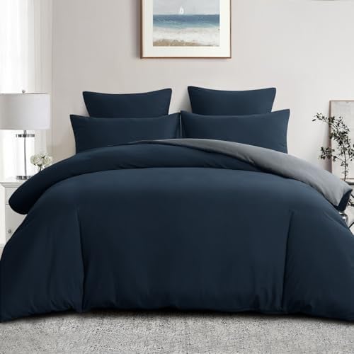 Aisbo Super King Size Duvet Cover Set - 3Pcs Reversible Bedding Bed Set Navy Blue and Grey Superking Soft Brushed Microfiber Quilt Cover with 2 Pillowcases 50x75cm
