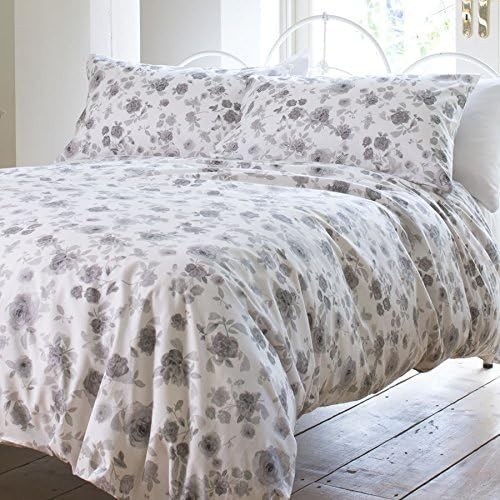 100% Cotton Grey Rose Design Duvet Cover Set White & Grey Superking Size