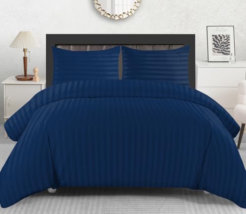 Lazzaro Satin Stripe Super King Duvet Set Pack of 2 - Premium Hotel Quality Quilt Cover Super King Size Bedding Set - Hypoallergenic Ultra Soft Superking Duvets Sets With Zipper Closure