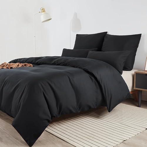 Soifox Super King Duvet Cover Set - Black Bedding Set Superking Size Bed with Zipper Closure, Soft Microfiber Quilt Cover with 2 Pillowcases