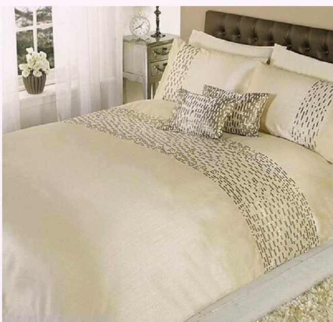 SUPERKING SIZE OYSTER BEIGE CHIC SEQUIN EMBELLISHED FAUX SILK DUVET SET